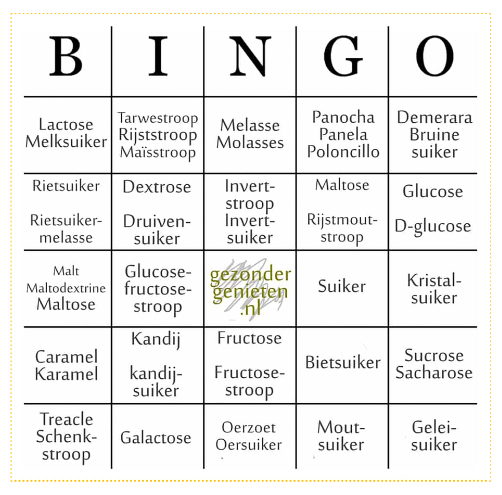 Zolang suiker, of een van de vele andere woorden voor geraffineerde suiker, niet bij