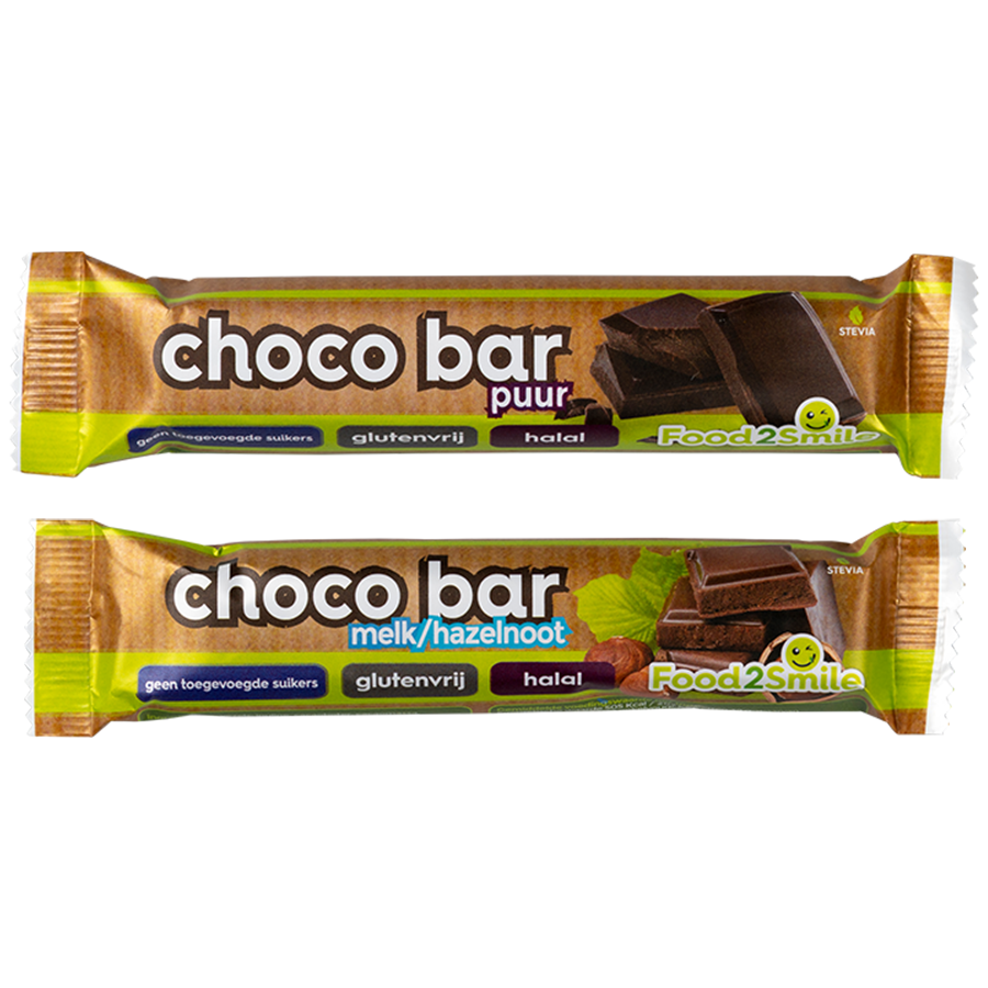 Are you looking for milk or dark chocolate without added sugars that is tasty? Look no further! The Food2Smile chocolate bars prooves that sugar is not necessary for chocolate to be just as tasty. Tasting is believing. The delicious and responsible milk chocolate bar comes with small pieces of hazelnut. The dark chocolate bar is alsvo vegan. Both made with 100% UTZ certified cocoa. No added sugar. Thatโs sweet!