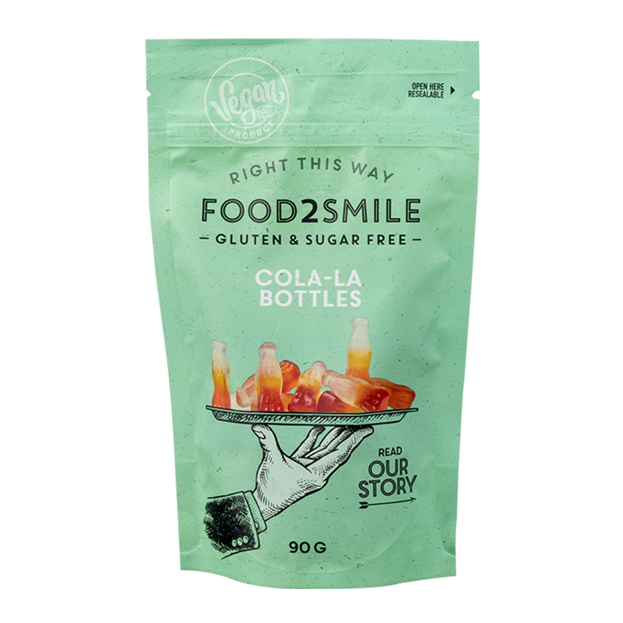 The famous gummy cola bottles, this time sugar free but just as sweet, thanks to sweeteners. These soft gummy cola bottles get their cola flavour from natural flavourings. And theyโre vegan too. Yes, thatโs right: our sugar free gummy sweets contain no gelatine. And to top it all off: theyโre also gluten free.โฏLet them bring a smile to your face!