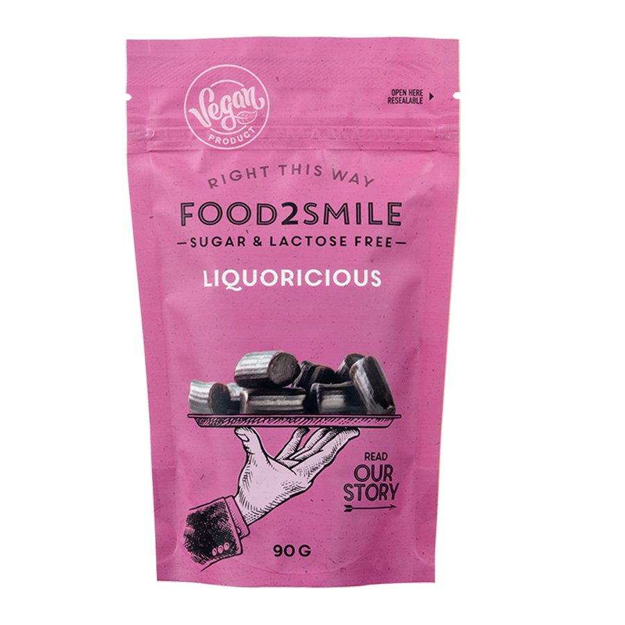 Liquorice: it doesnโt get more Dutch than this, does it? But we wouldnโt be Food2Smile if we didnโt add an improvement: sugar-free liquorice. The old-fashioned taste of liquorice but madeโฏin a modern and healthy way. Made from only the finest natural colourings and flavourings and packed in a handy resealable bag. Delicious โ Liquoricious!