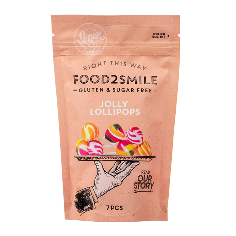 A new lollipop. Just like our famous twister lollipops, these really are the best lollipops you can buy. They are vegan, as the colours are extracted from vegetables, fruit and herbs making them safe for your tooth enamel. The sweetener isomalt is expelled by the body and therefore does not impact your blood sugar. This is why even diabetics are allowed to eat Jolly Lollipops. Try them for yourself! 7 sugar-free lollipops in a resealable bag with a mixture of the following flavours: orange pineapple, raspberry and tutti frutti. And, true to our word, they are totally sugar free!